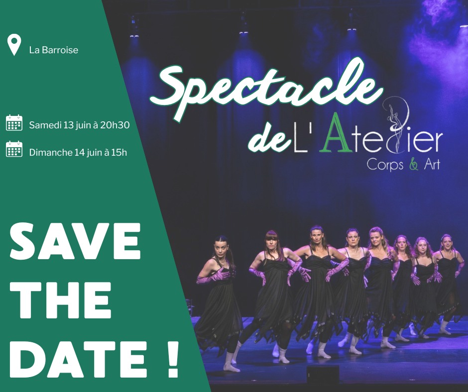 On vous donne rendez-vous pour notre spectacle de fin d’année à La Barroise ! Bloquez d’ores et déjà les dates dans vos agendas !